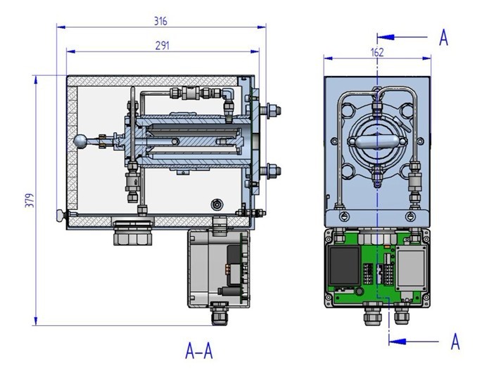 技術規格 技術規格 可選配:表面外膜0,2µm 能量功耗 約505 W 操作壓力 最大200 kPa abs 加熱元件 約500W 可選配:最大700 kPa abs 溫度傳感器 PT100 流量 600Nl/h 電源 230VAC / 50Hz 定位凸緣 DN 65, PN6; DIN 2573; SS316 可選配:115VAC / 60Hz 可選配:2“ ANSI-flange, 150lb. 接線盒 120 x 160 x 90 mm (WxHxD) 安裝角度 推薦 5°-15°,有利于冷凝物排水 電氣連接 鉗夾最大2.5 mm² 進氣口 G3/4“母螺紋 開關報警及電器 Typ. 230VAC/2A/min. 5VADC/5mA 出氣口 1/8“ NPT母螺紋 防護等級 電子IP65 測試氣口 6mm SS316隔壁直通 探針IP43 反沖氣口 6mm SS316隔壁直通 外殼 鋼板,黑色啞光處理 接液部件 1.4571, SiC, Viton® (FKM) 重量 約11 kg 溫度調節范圍 5 ... 200°C 尺寸 160 x 350 x 290 mm (WxHxD) 可選配:5 ... 315°C 工廠安裝環境 180°C